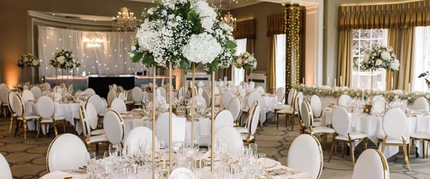 With an incredible eye for detail, S&G transformed the Radcliffe Room with a regal white and gold theme. Think golden chairs, champagne towers and big beautiful floral arrangements... including a surprise centrepiece for the top table!