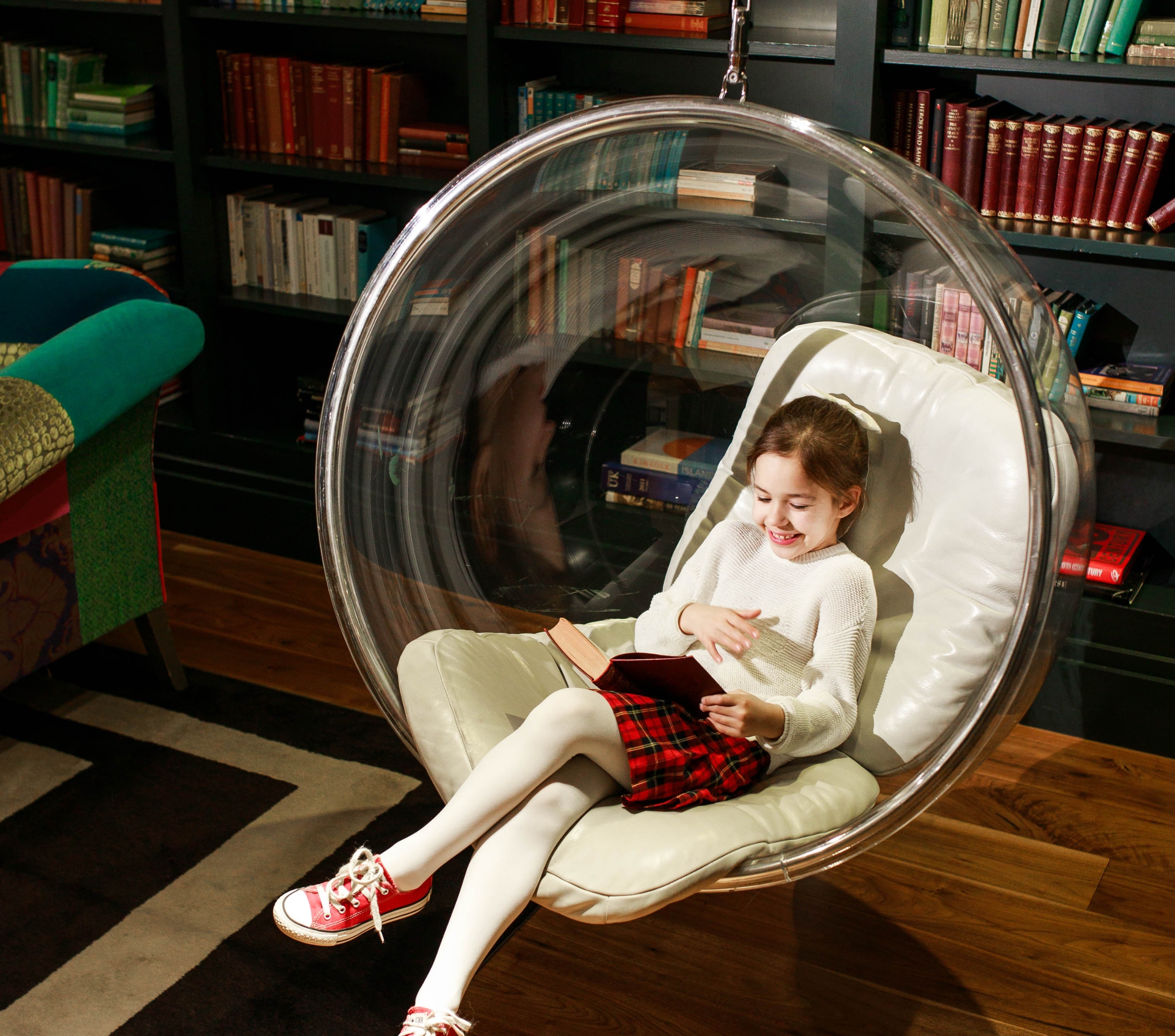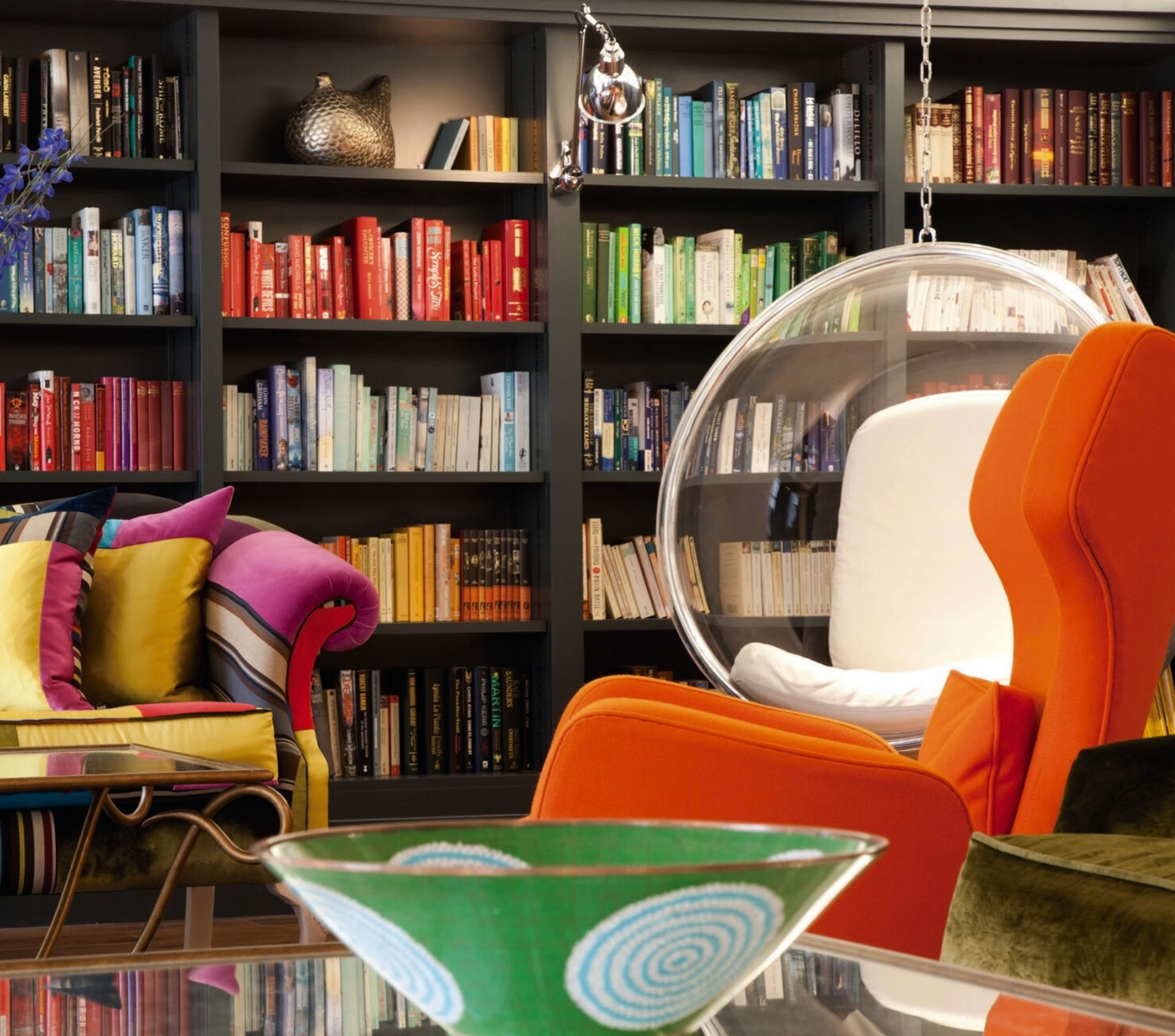 When you've made your selection, relax on one of our colourful sofas, or hang out in the bubble chair.