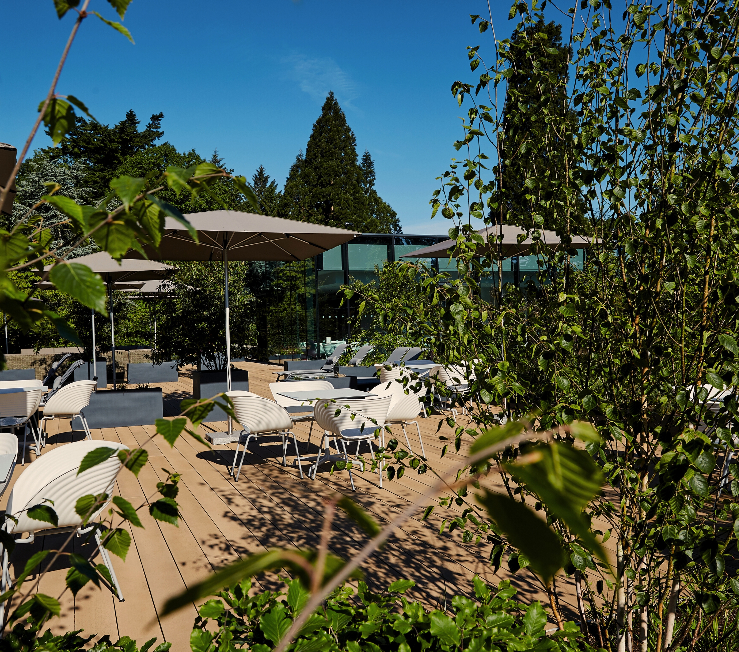 A respect of the natural landscape is reflected throughout the Roof Top Spa Garden, which takes its cue from the woodland glades that border The Spa. Guests can enjoy the south facing Sun Deck, warm open-air Spa Bath and Garden Sauna Cabin amongst this garden with swathes of ornamental grasses, flowering dogwood and mature trees that create the sensation of the garden floating in a woodland.