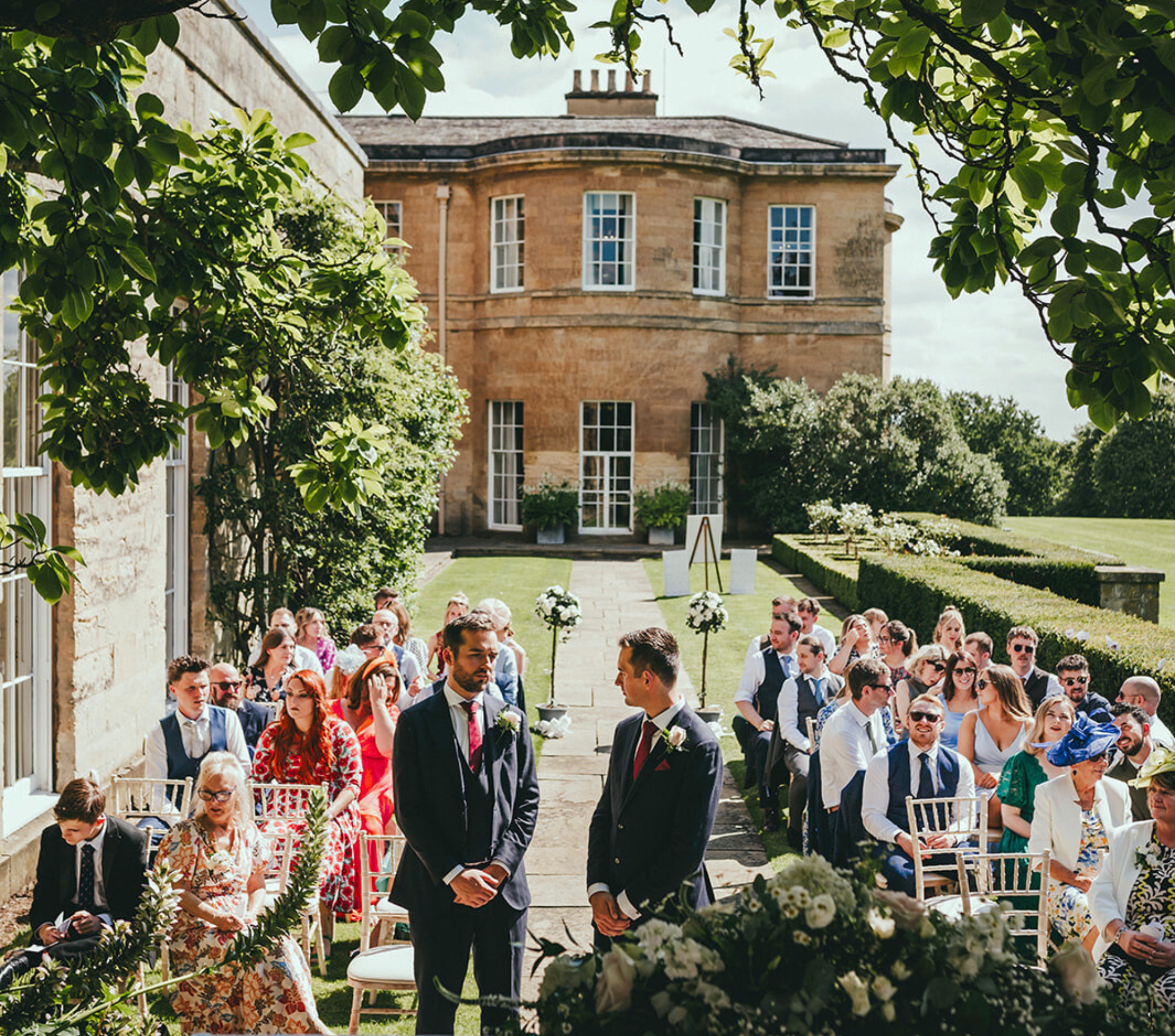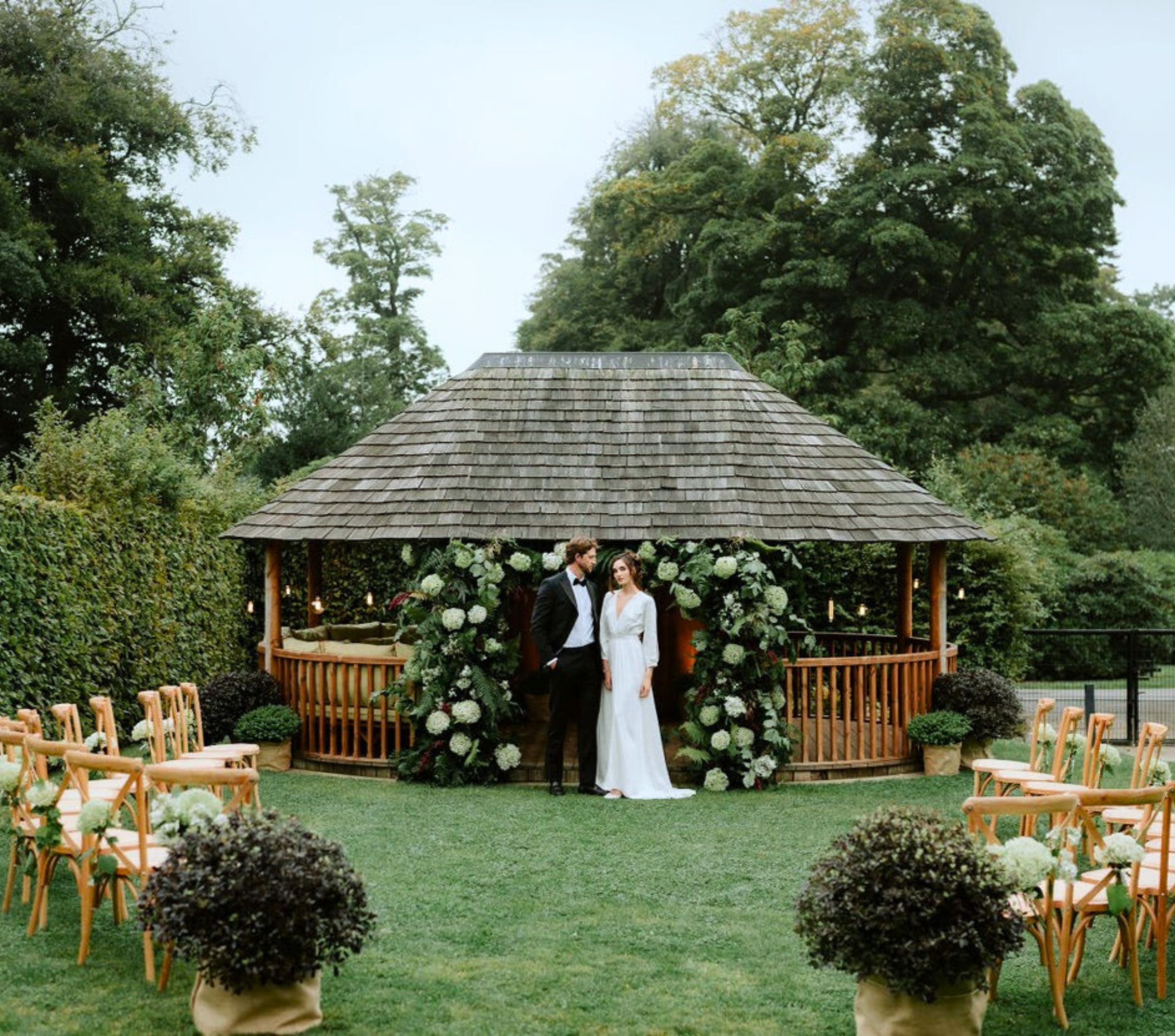 A classical setting with a ready-made aisle leading to the archway and bust of Jupiter. Seasonal colour from wisteria and magnolia softens the space, creating a naturally beautiful backdrop for your ceremony.