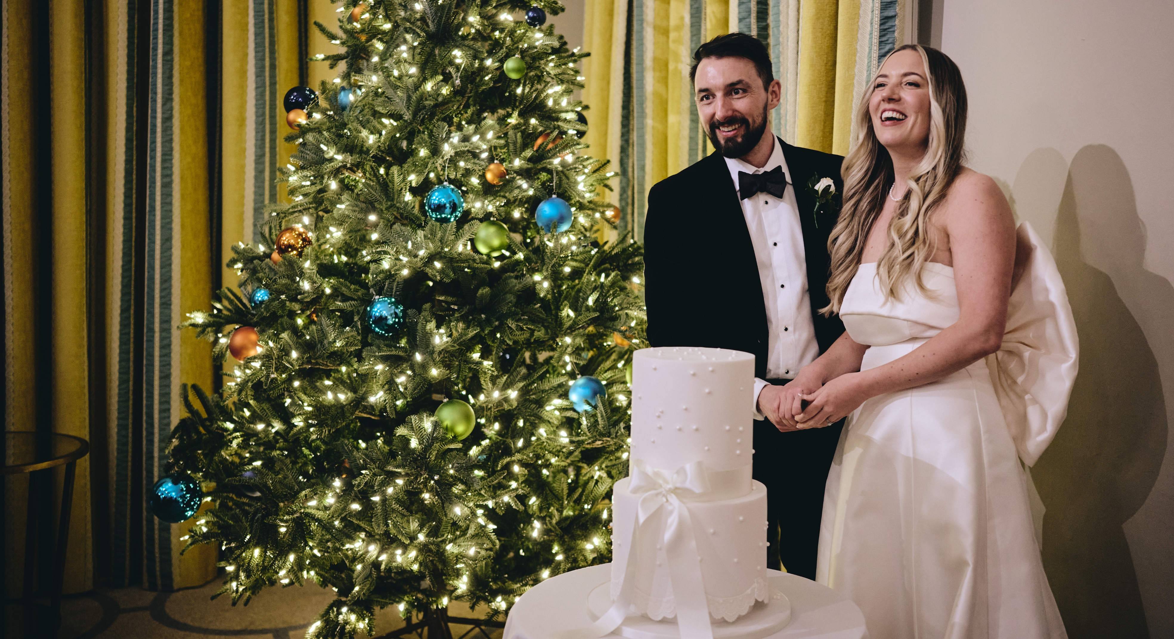The Christmas Globe Wedding Portrait