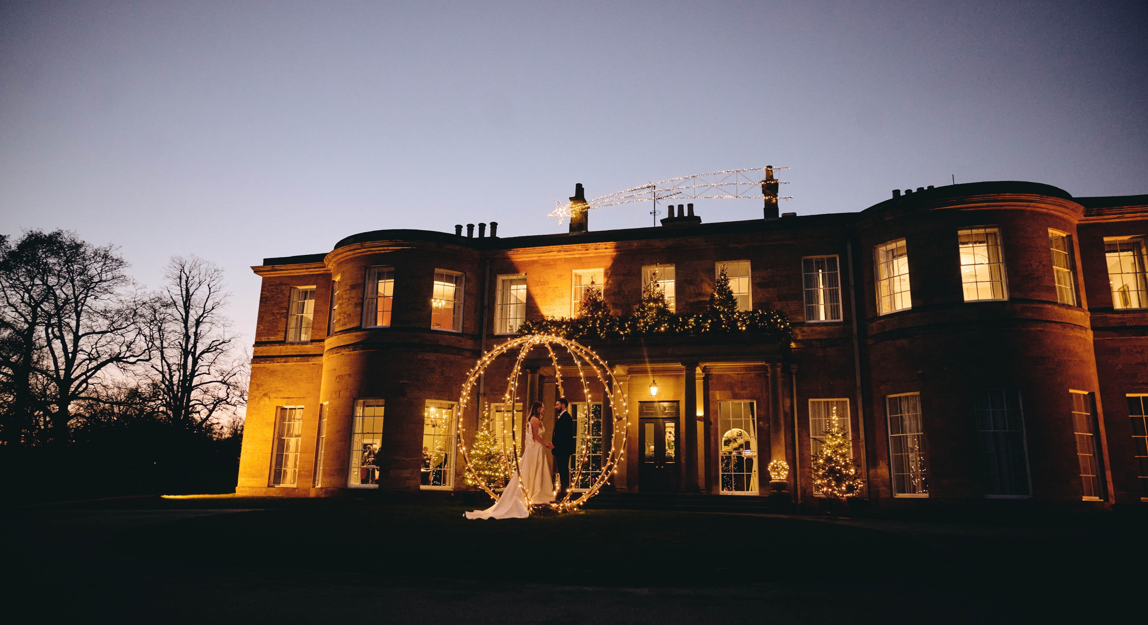 Festive Wedding Portraits Outside Rudding House